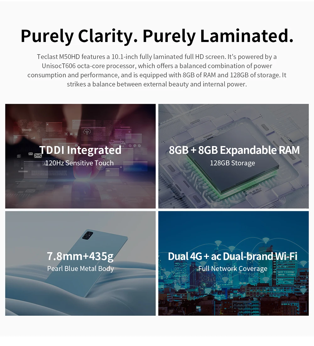 M50HD 2024 Tablet (Unisoc T606 8-Core 1.6Ghz/)16Gb(8Gb+8Gb) RAM/128GB ROM/10.1 Inch 1200×1920Ips TDDI/WIFI5G/4G Dual SI